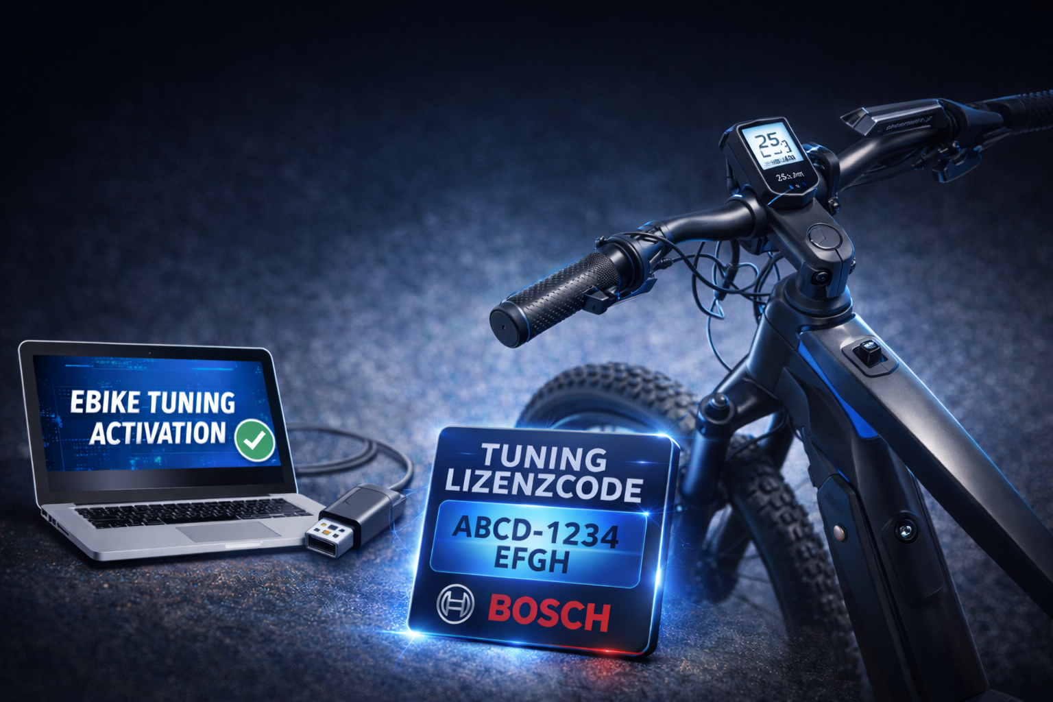 Aktiviere die Freischaltung deines Bosch E-Bike Systems schnell und unkompliziert per PC. Die digitale Lösung funktioniert komplett ohne Hardware-Einbau oder aufwendige Montage und kann jederzeit wieder rückgängig gemacht werden. Einfach verbinden, Lizenz aktivieren und das System ist einsatzbereit sauber, unsichtbar und in wenigen Minuten erledigt.